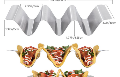 • -Versatile features- They keep the tacos upright while you add the toppings, making it much easier to build your tacos! You can use them to make a variety of tacos for a group of taco-loving friends! It can also hold taquitos, tortillas, roll ups, and desserts like biscotti.